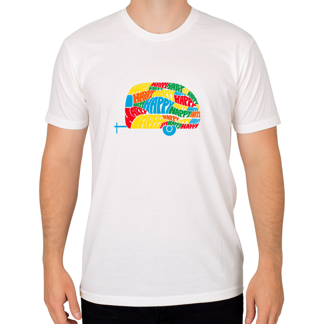 bring the vibes wherever you go with our iconic white rainbow camper tee! this next level brand tee features the happy camper van in a bold burst of color. It’s a wearable mood booster that screams good times, good pizza, and great company!